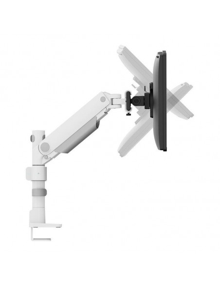 Suporte de monitor para mesa NEOMOUNTS DS65S, compatível com monitores de 24" a 34" e até 11kg. Ajustável em altura, inclinação e rotação. Design elegante e funcional em branco.