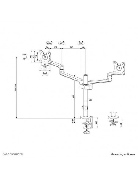 Suporte para Monitor Neomounts by NewStar DS60-425BL2 - Mesa, 2 Monitores, 17"-27"