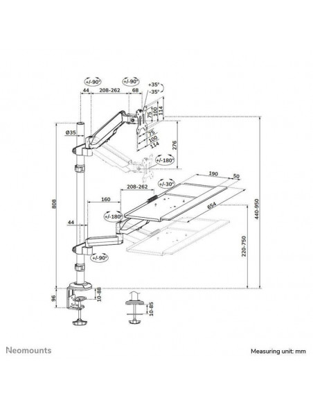 O suporte de monitor Newstar DS90-325BL1 é uma solução ergonómica e versátil para quem procura otimizar o seu espaço de trabalho. Este suporte de montagem de mesa permite uma ampla gama de ajustes, adaptando-se às necessidades individuais de cada utilizador. Compatível com ecrãs de 17 a 32 polegadas (com capacidade de carga máxima de 9kg para ecrãs planos e 6kg para ecrãs curvos ou ultrawide), permite uma configuração personalizada, graças à sua capacidade de movimento completo: inclinação (+35° a -35°), rotação (+90° a -90°) e pivô (+180° a -180°). A altura ajustável (44-95 cm) facilita a utilização tanto sentado como em pé, promovendo uma postura mais confortável e evitando problemas de saúde relacionados com a má postura. O suporte inclui uma bandeja para teclado e rato, maximizando o conforto e organização. O sistema de gestão de cabos mantém tudo arrumado e organizado, melhorando a estética do espaço de trabalho. A instalação é rápida e fácil, graças ao sistema de libertação rápida VESA. O suporte é compatível com padrões VESA de 75x75mm e 100x100mm. Este suporte oferece uma solução de alta qualidade, ideal para quem procura melhorar a ergonomia e produtividade no seu ambiente de trabalho.