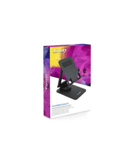 O suporte Tooq Hermes Halley (PH-HERMES-HALLEY) é um suporte de mesa ajustável concebido para tablets com ecrãs até 12,9 polegadas (32,8 cm).  Este suporte permite uma rotação de 360º, proporcionando um amplo ângulo de visão para maior conforto e flexibilidade. As almofadas antiderrapantes garantem a estabilidade do seu tablet, evitando quedas acidentais.  A sua capacidade de dobragem torna o armazenamento e transporte muito práticos.  O pacote inclui o suporte, um kit de montagem completo (incluindo ferramentas) e um manual de instruções detalhado. O suporte suporta um peso máximo de 1 kg e o seu alcance de ajuste de altura varia entre 122 mm e 182 mm. As dimensões do suporte são 120mm (largura) x 180mm (profundidade) x 203,5mm (altura) e quando dobrado fica com dimensões 12cm x 18cm x 4,5cm.