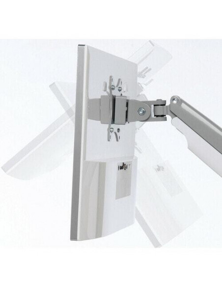 A funcionalidade de ajuste de altura (170mm - 505mm) e a articulação de movimento completo (giro e rotação de 180°, inclinação de +/- 90°) permitem uma personalização completa da posição do monitor, encontrando a posição ideal para cada utilizador. O design elegante e a fácil instalação completam as características deste suporte, tornando-o uma solução eficiente e prática para melhorar o conforto e a produtividade no seu trabalho.