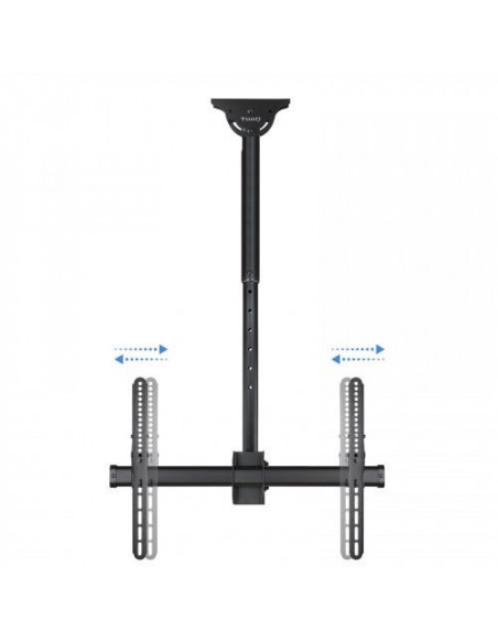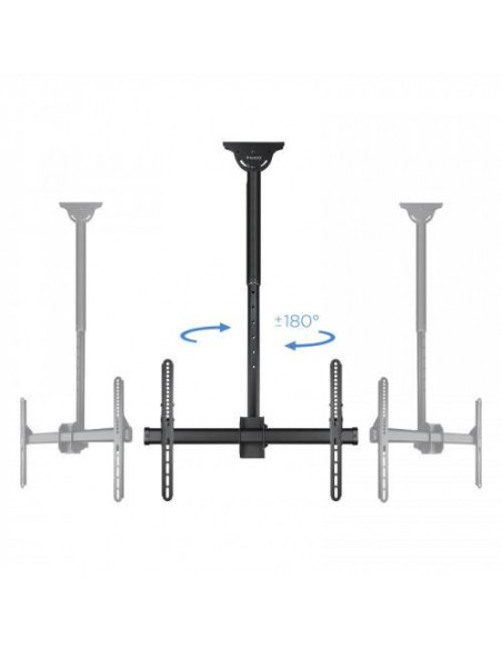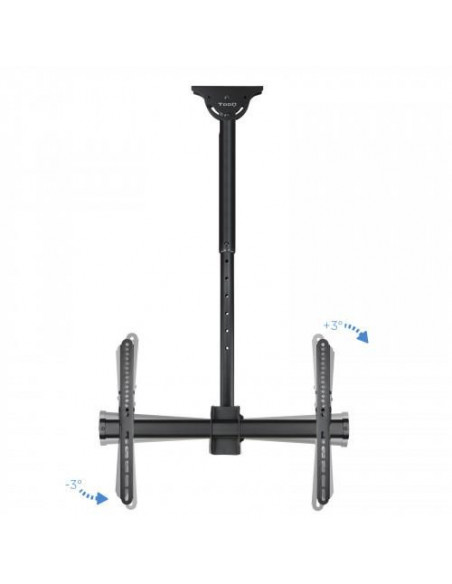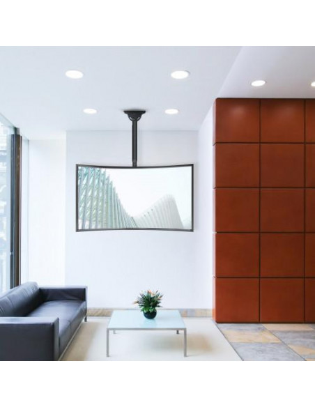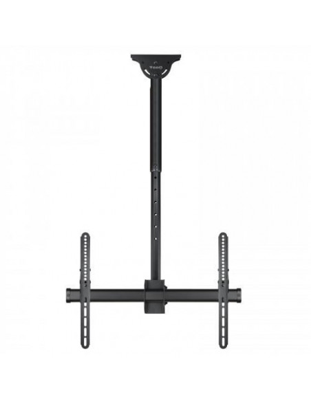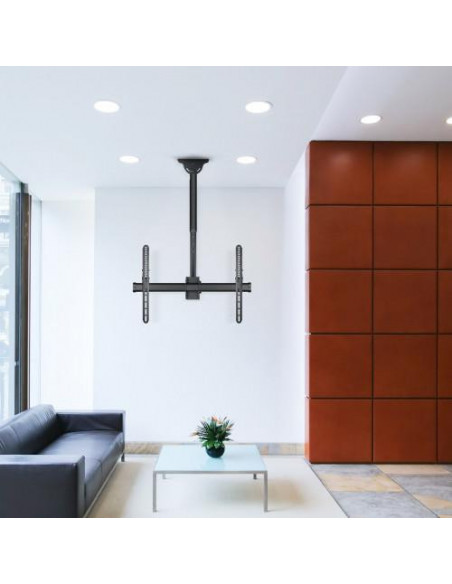Este suporte de teto Tooq LPCE1170TSLI-B é ideal para ecrãs de 37" a 70" (94cm a 178cm). Suporta até 50kg e oferece ajustes de inclinação, rotação e nivelamento para uma visualização optimizada. Compatível com várias normas VESA, adapta-se a diferentes monitores. A instalação é facilitada pelo sistema de organização de cabos e manual incluído. É também compatível com ecrãs curvos.