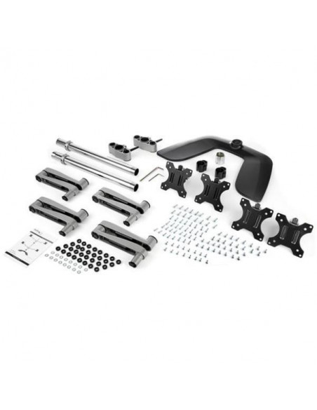 Este suporte é ideal para quem trabalha com múltiplas aplicações simultaneamente, melhorando a produtividade e o conforto visual. A organização dos monitores numa configuração multi-ecrã aumenta significativamente a área de trabalho disponível, permitindo uma melhor gestão de tarefas e aumento da eficiência. A construção em aço garante a estabilidade do sistema, mesmo com monitores de grande dimensão e peso.