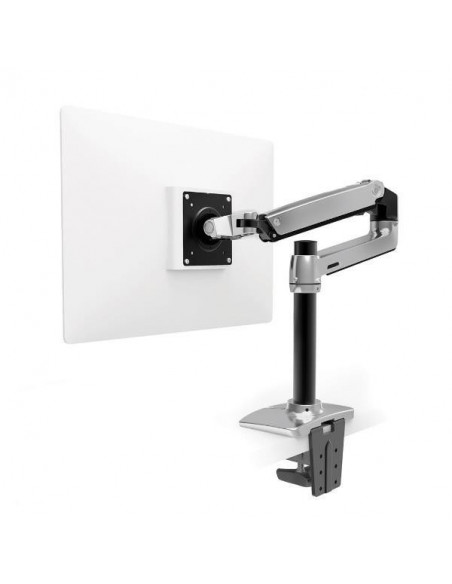 Suporte de monitor Ergotron LX para mesa, com poste alto e construção em alumínio. Suporta monitores de até 34 polegadas e com peso máximo de 11,3 kg. Ajustável em altura e com inclinação e rotação para melhor ergonomia.