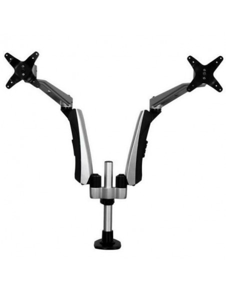O suporte para monitor Startech ARMDUAL30 é um acessório ideal para quem procura uma solução estável e elegante para o seu ecrã. Fabricado em aço, garante a segurança e a durabilidade do seu monitor. O seu design combina o prateado e o preto, conferindo-lhe um aspeto moderno e sofisticado.