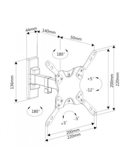 Ewent EW1521, 75 x 75 mm, 200 x 200 mm, 12 - 5°, -90 - 90°, Metal, Plástico, Ferro, Preto