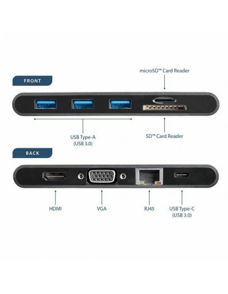 A docking station Startech DKT30CHVSCPD é uma solução prática e eficiente para expandir as opções de conectividade de computadores portáteis.  Feita de plástico e na cor preta, é uma solução ideal para aumentar o número de portas disponíveis no seu portátil.  Detalhes técnicos: