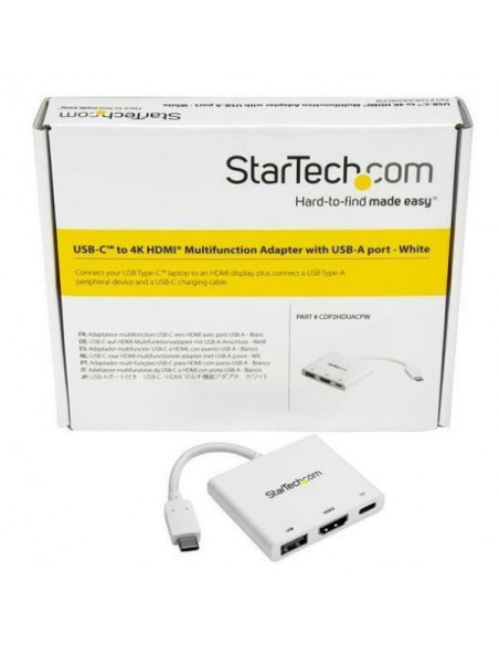 Esta docking station Startech, com código CDP2HDUACPW e EAN 0065030867160, expande as portas de um computador portátil. É de cor branca e construída em metal. Oferece uma solução prática para aumentar a conectividade do seu portátil. Garantia de 36 meses.