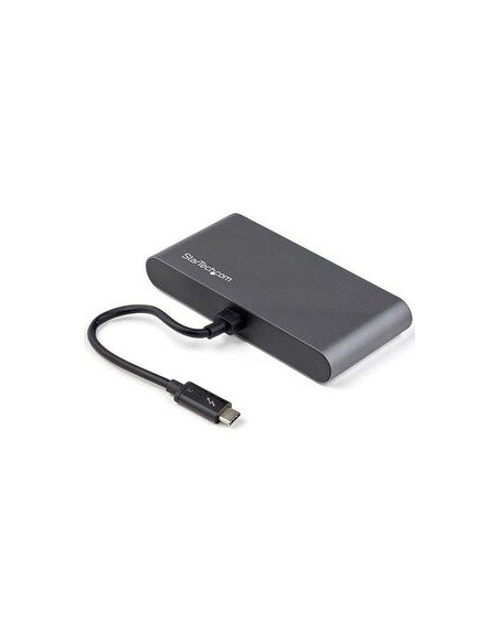 A estação de acoplamento StarTech Thunderbolt 3 Mini Dock Dual HDMI 4K é uma solução compacta e eficiente para expandir as capacidades do seu portátil. Oferece uma ampla gama de opções de conectividade, incluindo duas portas HDMI para conectar até dois monitores 4K, proporcionando uma experiência visual imersiva. As três portas USB (uma delas USB 2.0 e duas USB 3.1 Gen 1 Tipo-A) permitem conectar periféricos como ratos, teclados e unidades externas. A porta Ethernet (RJ-45) garante uma ligação à rede estável e rápida. A estação de acoplamento é compatível com uma variedade de computadores portáteis, incluindo modelos da Dell (XPS), HP (EliteBook), Lenovo (X1 Carbon), e Apple (MacBook Pro 13, MacBook Pro 16, MacBook Air). Com uma potência máxima de alimentação de 100W, pode alimentar o seu portátil enquanto utiliza a docking station. O seu design compacto e leve, com dimensões de 27,9 mm de altura, 68,6 mm de largura e 124,5 mm de profundidade, e peso aproximado de 147,4 g, facilita o transporte e a utilização em diferentes locais. A estação de acoplamento StarTech.com inclui um manual de utilizador. Para mais informações, consulte o site do fabricante: http://www.startech.com/. A garantia limitada é de 3 anos.