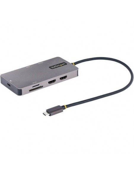 StarTech.com USB C Multiport Adapter, Dual HDMI Video, 4K 60Hz, 2-Port 5Gbps USB-A Hub, 100W Power Delivery Charging, GbE, SD/MicroSD, USB Type-C Mini Travel Dock, 12"/30cm Cable - USB C Laptop Docking Station - Estação de engate - USB-C / Thunderbolt 3 /
