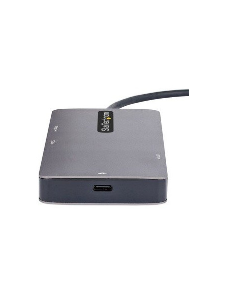 Este adaptador multiportas USB-C da StarTech.com oferece uma solução compacta e versátil para expandir a conectividade do seu portátil ou tablet. Com uma variedade de portas, incluindo HDMI 4K a 60Hz, este adaptador permite que conecte múltiplos dispositivos simultaneamente, melhorando a sua produtividade e multitarefa. A porta HDMI 4K a 60Hz permite que desfrute de imagens nítidas e fluidas em qualquer ecrã compatível, ideal para trabalho ou entretenimento.