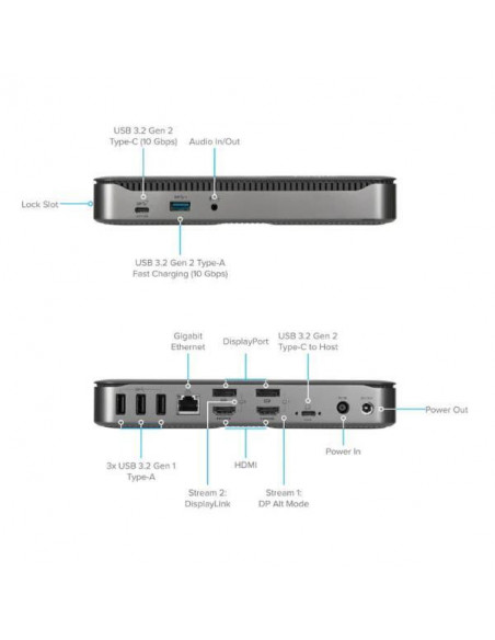 Docking Station universal Targus DOCK710EUZ com design em alumínio preto. Expanda as portas do seu portátil com facilidade.  Compacta e eficiente.