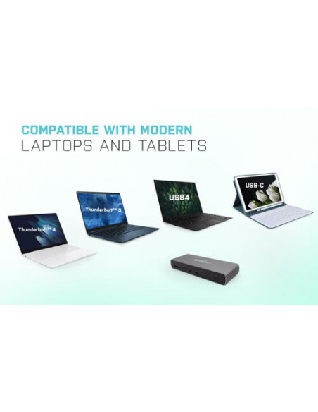 A capacidade de suporte para dois monitores simultaneamente aumenta significativamente a produtividade, permitindo uma melhor organização e gestão de tarefas. As portas Thunderbolt 4 e USB-C garantem velocidades de transferência de dados excecionais, tornando-a ideal para aplicações profissionais e exigentes. O carregamento Power Delivery 96W assegura a alimentação contínua do seu portátil, mesmo durante o uso intensivo da docking station. Esta docking station é uma solução versátil e eficiente para utilizadores que necessitam de uma conectividade superior e carregamento rápido para o seu portátil. Para informações detalhadas sobre a conectividade e compatibilidade, consulte o site do fabricante ou contacte-nos diretamente para esclarecimentos adicionais.