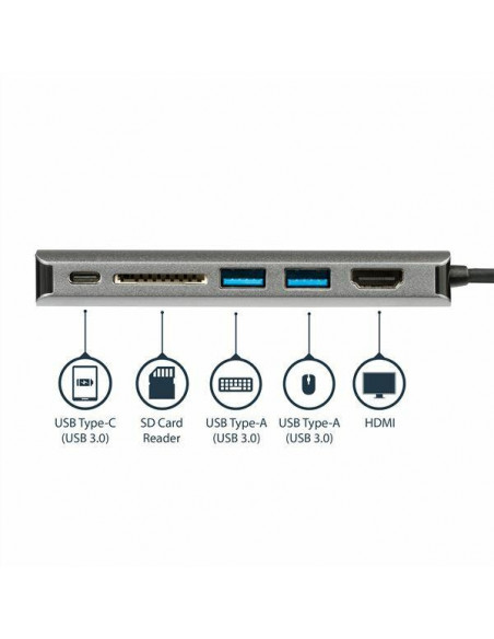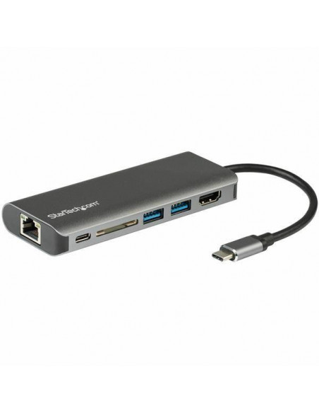 A Docking Station StarTech DKT30CSDHPD3 oferece uma solução prática e eficiente para expandir as opções de conectividade do seu tablet ou portátil.  Construída em alumínio de alta qualidade, esta docking station apresenta um design elegante e robusto, ideal para ambientes profissionais ou domésticos.  A sua principal funcionalidade é expandir o número de portas disponíveis, permitindo conectar diversos periféricos simultaneamente, como monitores externos, teclados, mouses e outros dispositivos.  A cor cinza confere um visual discreto e sofisticado que se adapta a diversos ambientes.  A sua construção em alumínio garante durabilidade e resistência, assegurando um longo período de uso sem comprometer o desempenho.