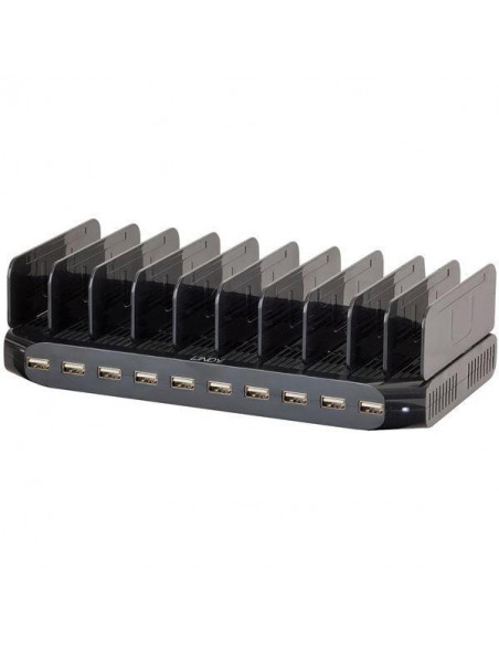 Esta estação de carga USB Lindy com 10 portas é ideal para carregar múltiplos dispositivos simultaneamente.  Com design compacto e funcionalidade universal, é uma solução perfeita para escritórios e casas.