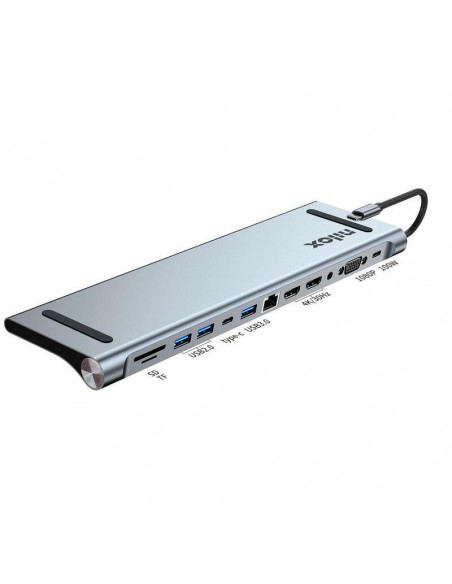 A Docking Station NILOX NXDSUSBC07 USB-C expande a conectividade do seu portátil com 12 portas, incluindo 2xHDMI 4K, VGA, USB 3.0 e Ethernet. Design em alumínio elegante e compacto.