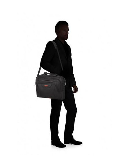 Maleta para portátil American Tourister SA33G005, compatível com computadores até 15,6 polegadas e tablets até 10,1 polegadas. Design prático com alças de transporte, alça de ombro e compartimento frontal. Construída em poliéster, oferece proteção e organização para seus dispositivos eletrônicos.