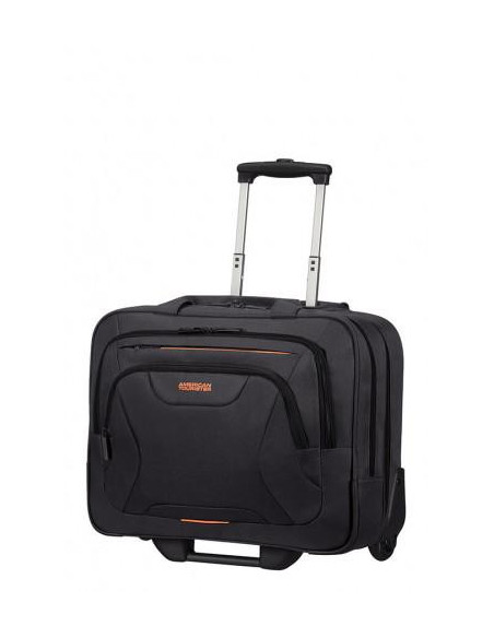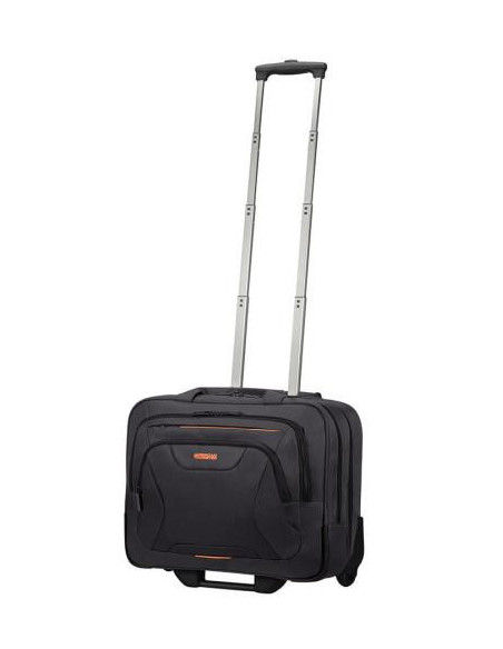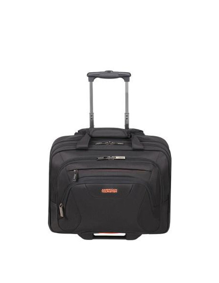 O maletín American Tourister At Work SA33G006NE é um maletín com rodas projetado para transportar um portátil de até 15,6 polegadas (39,6 cm) e roupa. Possui um design prático e funcional, ideal para viagens de negócios ou lazer. Confeccionado em poliéster resistente, o maletín oferece segurança e durabilidade para seus pertences. As dimensões externas são 230 mm de profundidade, 440 mm de largura e 380 mm de altura, proporcionando um volume interno de 22 litros. O compartimento para o portátil possui dimensões internas de 370 x 40 x 270 mm. Inclui um bolso frontal adicional para organização de pequenos itens. Além da alça de transporte superior, o maletín dispõe de uma alça de ombro removível para maior conforto durante o transporte. O peso do maletín é de 2,5 kg. A cor principal é preta, com detalhes em laranja. Possui compartimento para tablet e é compatível com qualquer marca de portátil. A coloração da superfície é monótona.