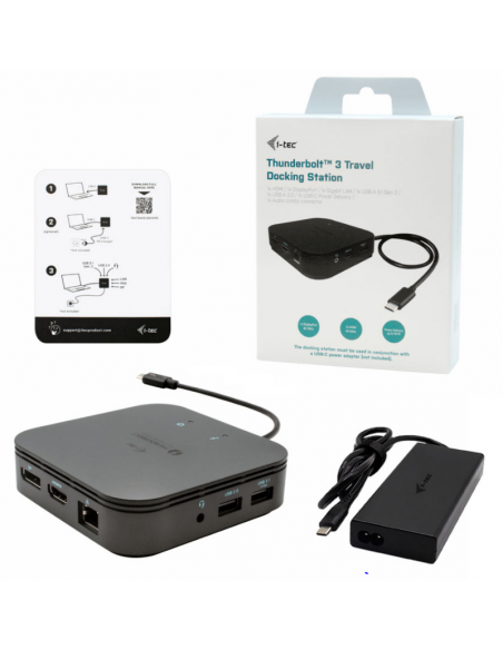 - 1X Docking Station i-tec TB3TRAVELDOCKPD60W; 1x Manual; 1x Adaptador de carregamento USB-C 77W