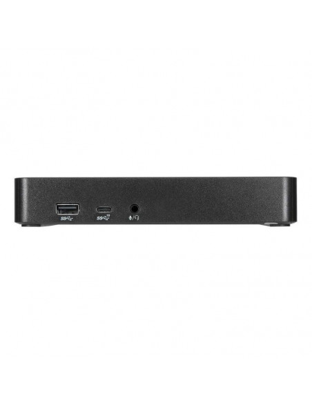 A Docking Station Targus também inclui uma porta RJ-45 para uma conexão de rede cablada estável e confiável, uma entrada de áudio de 3,5 mm para auscultadores e microfone, e um slot de segurança Kensington para proteger o seu investimento. A sua compatibilidade com o padrão Plug and Play simplifica a instalação e a utilização, permitindo uma integração rápida e sem problemas no seu fluxo de trabalho.