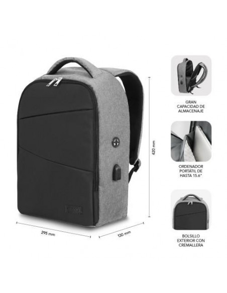 Mochila anti-roubo Subblim Secure V2 AP, ideal para transporte diário de portáteis até 16 polegadas e outros objetos de valor. Construída em poliéster de alta qualidade, resistente a cortes e à água, possui sistema Air Padding para proteção extra do portátil e abertura traseira para evitar roubos. Inclui múltiplos compartimentos e porta USB para carregamento de dispositivos móveis (power bank não incluído).
