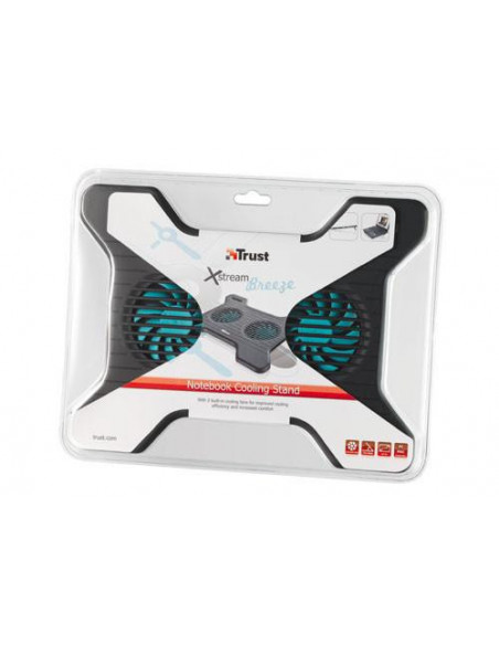 O suporte para portátil Trust XStream Breeze oferece uma solução simples e eficiente para refrigeração e ergonomia.  Concebido para portáteis, netbooks e MacBooks com ecrãs até 16 polegadas (40,6 cm), este suporte ajuda a manter o seu dispositivo fresco e a evitar o sobreaquecimento, protegendo também as suas pernas ou a sua secretária do calor. Os dois ventiladores integrados são silenciosos e alimentados através de uma ligação USB, sem necessitar de ligação à corrente elétrica.