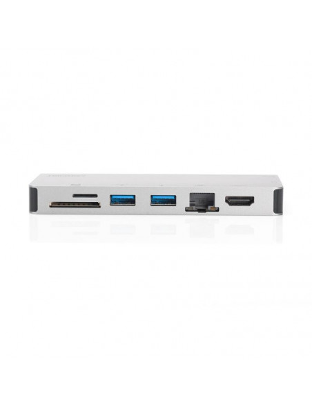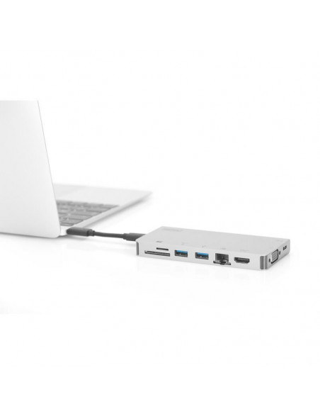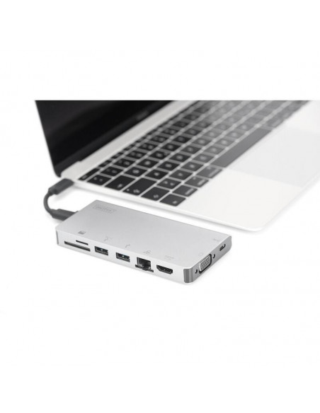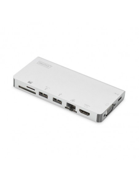A Digitus DA-70866 é uma docking station versátil e compacta, ideal para expandir a conectividade do seu portátil. Com suporte para USB 3.2 Gen 2 (3.1 Gen 2) Type-C, HDMI, VGA e Ethernet Gigabit, oferece uma ampla gama de opções de ligação. A sua construção em alumínio garante durabilidade e um design elegante.