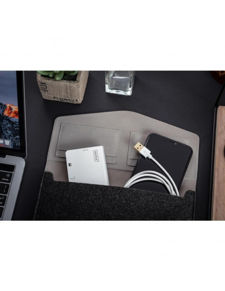A docking station é alimentada via USB, sendo compatível com o padrão USB Power Delivery 2.0. A sua construção compacta e design em alumínio prateado tornam-na num acessório discreto e elegante para qualquer ambiente de trabalho. As dimensões reduzidas de 61mm x 125mm x 15mm, e o seu peso de apenas 135g, tornam-na fácil de transportar e utilizar em vários locais.