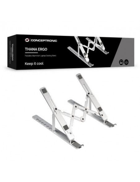Suporte para Portátil Conceptronic THANA04S: Dobrável, Alumínio, 10-15.6"