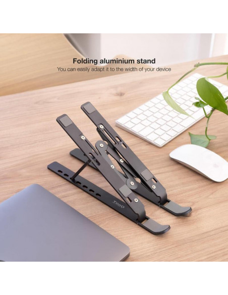 Suporte para Portátil Tooq TQLRS0033-AL-G - Alumínio, Plegável, 7 Ajustes de Altura
