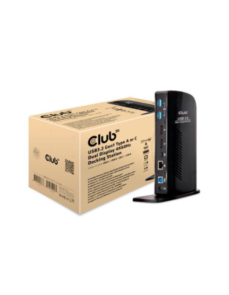 Esta docking station Club3D USB 3.2 Gen1 oferece conectividade versátil para o seu computador portátil.  Suporta até dois monitores 4K a 60Hz com tecnologia DisplayLink, e inclui múltiplas portas USB 3.2, Gigabit Ethernet e portas de áudio.  Ideal para aumentar a produtividade e conectividade do seu portátil.