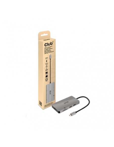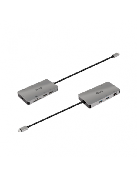 Docking Station Club3D USB 3.2 Gen1 Tipo-C: 8 em 1, 2x HDMI, 2x USB-A, RJ45, SD, MicroSD