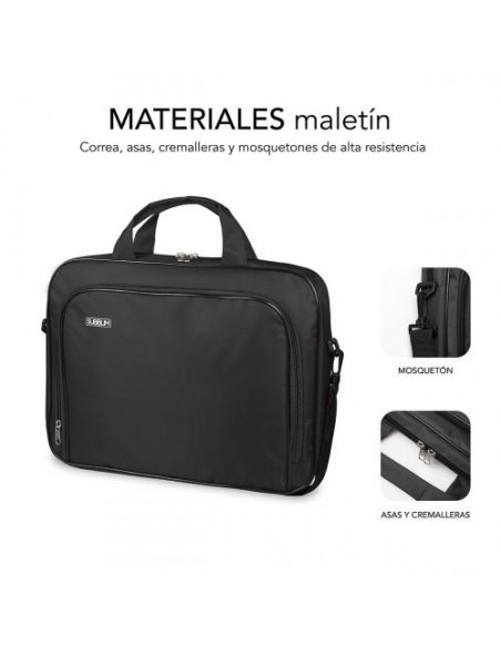 Para além do compartimento principal, o maletín dispõe de um bolso frontal para guardar acessórios como o carregador, rato, ou outros objetos pessoais. As alças de ombro ajustáveis e removíveis e a pega superior tornam-no fácil de transportar, adaptando-se a diferentes situações, seja para viagens de negócios ou uso diário.