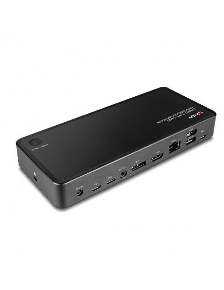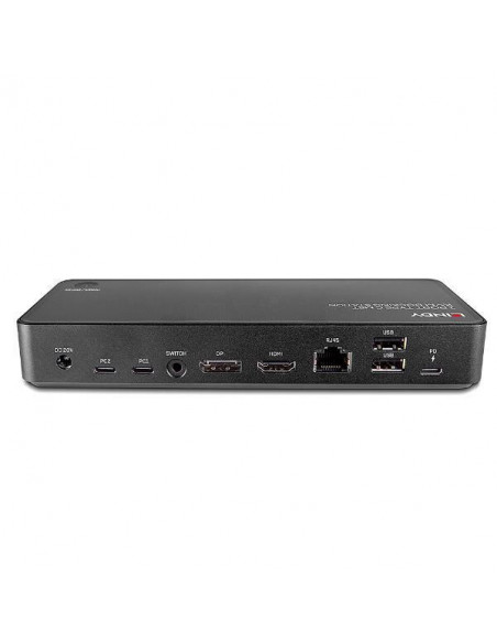 A Estação de Docking KVM Lindy 43202 é um adaptador de encaixe em alumínio preto. Ideal para conectar múltiplos dispositivos.