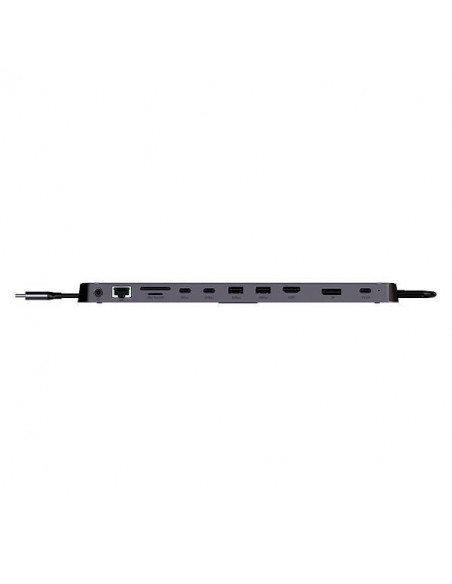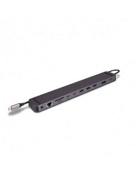 A Docking Station Lindy DST-Mini XT 810 é uma solução compacta e versátil para expandir a conectividade do seu portátil USB-C. Este dispositivo permite ligar até dois monitores simultaneamente, com a capacidade de suportar resoluções de até 8K num único ecrã ou 4K a 60Hz em dois ecrãs, proporcionando uma experiência visual excepcional. A sua construção em metal confere-lhe uma robustez e durabilidade significativas, enquanto o acabamento prateado lhe dá um toque elegante e profissional.