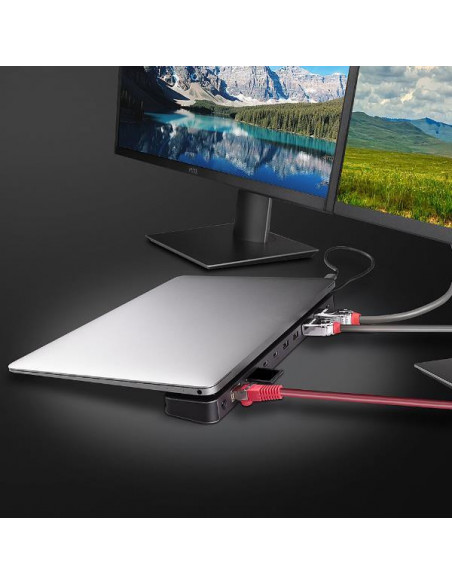 Esta docking station é uma solução ideal para utilizadores que necessitam de expandir a capacidade de conectividade do seu portátil, seja para aumentar a produtividade com monitores adicionais, conectar periféricos como impressoras e teclados, ou simplesmente para ter mais portas USB disponíveis. A sua compatibilidade com resoluções de alta definição faz dela uma escolha perfeita para profissionais de design gráfico, edição de vídeo ou outros campos que requerem um elevado nível de precisão visual.