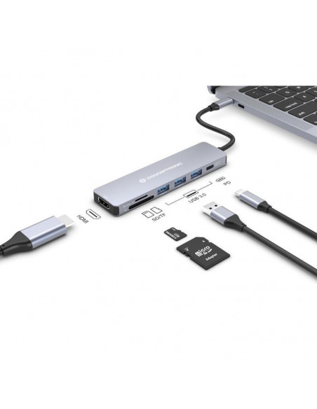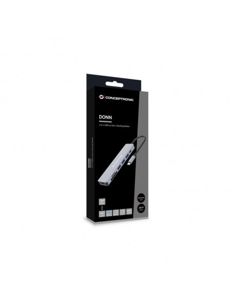 Docking Station Conceptronic DONN19G - Hub USB-C 7 em 1 com HDMI, 3x USB-A, USB-C PD 100W e Leitor de Cartões SD/MicroSD
