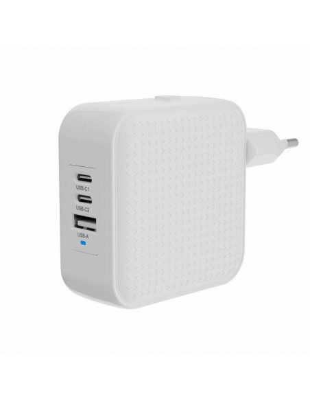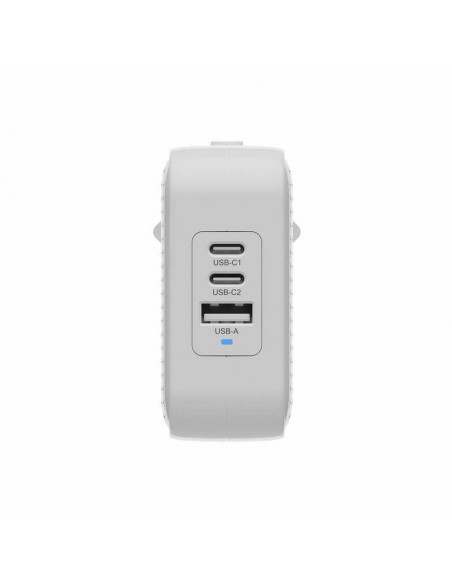A versatilidade deste carregador é uma das suas principais características. Oferece três portas de carregamento: duas portas USB-C e uma porta USB-A, permitindo carregar até três dispositivos simultaneamente. A compatibilidade com diversos protocolos de carregamento rápido, incluindo GaN, Power Delivery 3.0, Programmable Power Supply (PPS), Quick Charge 2.0 e Quick Charge 3.0, garante uma carga otimizada para uma vasta gama de dispositivos. Isto significa que pode carregar o seu portátil, smartphone e tablet ao mesmo tempo, sem ter que se preocupar com compatibilidade ou tempos de carregamento excessivos.