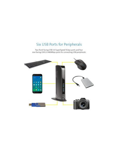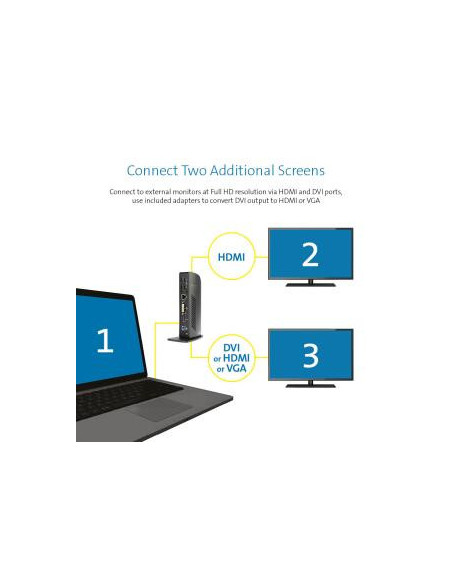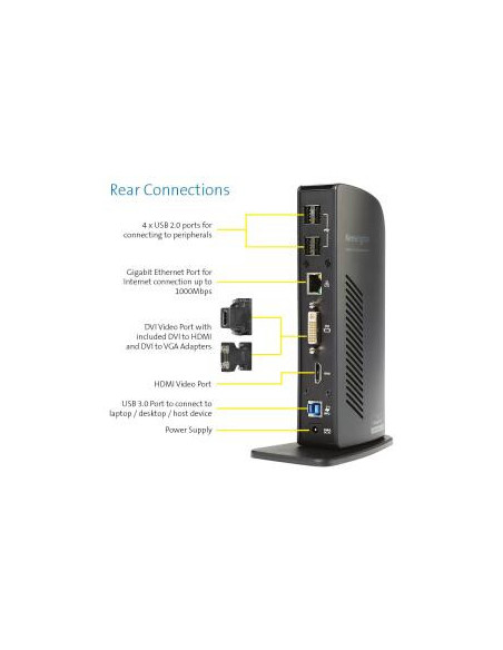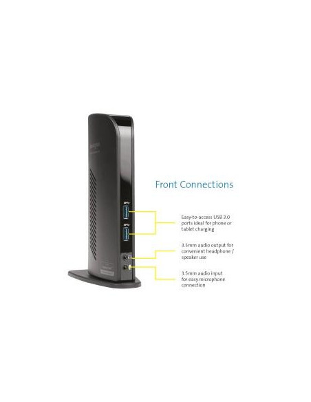 Os Ultrabooks e outros laptops super-finos são elegantes e elegantes. Mas geralmente não têm muitas portas de conexão. Como resultado, somos forçados a estar constantemente a ligar e desligar periféricos, para usar os dispositivos que você precisa. Aqui entra em jogo a docking station Kensington Dual USB 3.0. Converte uma única porta USB em seis portas, assim com uma única conexão USB hot-swappable terão acesso a todos os periféricos: impressora, disco rígido externo, scanner, teclado, mouse, alto-falantes 2.0 e até dois monitores de vídeo 1080HD. Não há nada que aumenta a produtividade mais do que um segundo monitor, e dual docking station Kensington USB 3.0 basta conectar um único cabo USB para adicionar dois monitores belas HD.