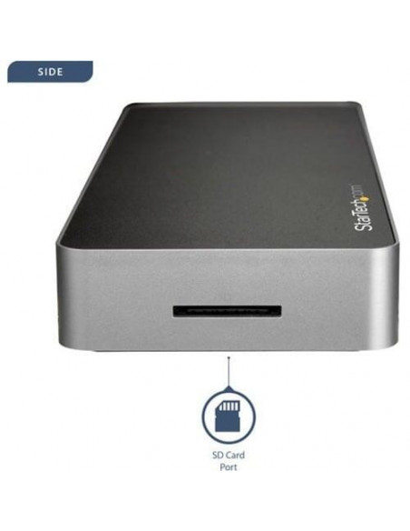 Além da capacidade de visualização aprimorada, a docking station integra um leitor de cartões SD?, fornecendo acesso rápido e direto a cartões de memória SD ou microSD? (com adaptador). Esta funcionalidade é conveniente para transferência de arquivos, armazenamento adicional e backup através do Time Machine do macOS X ou do Histórico de Arquivos do Windows 10.