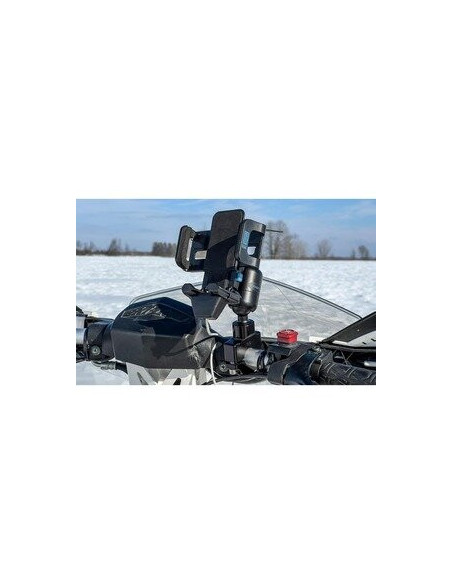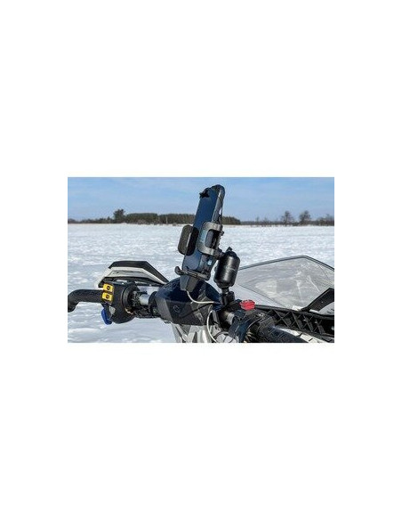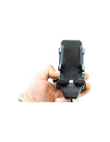 Base de carregamento e sincronização universal Gamber-Johnson para dispositivos móveis. Inclui cabo USB-C. Design compacto e funcional. Ideal para integração em sistemas POS.