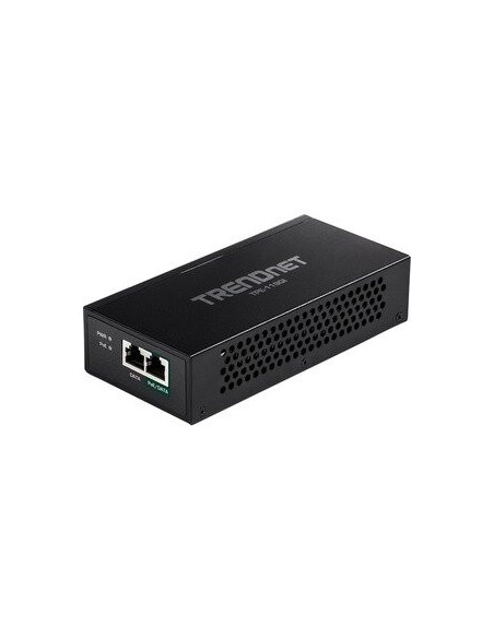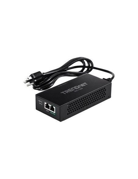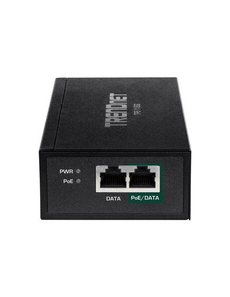 Injetor PoE Gigabit Trendnet TPE-119GI, compatível com os switches Gigabit 4PPoE BG102G e BG182G.  Oferece 95W de potência e várias certificações. Ideal para alimentar dispositivos PoE.
