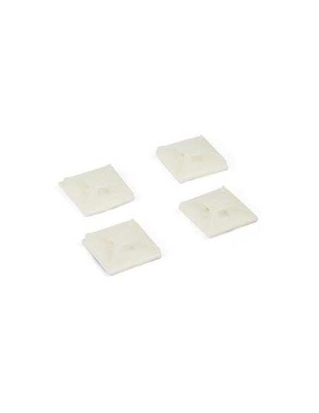 Conjunto de 100 suportes autoadesivos para abraçadeiras StarTech, na cor branca, fabricados em nylon 66 e conformes com as normas TAA. Ideais para organização e fixação de cabos.