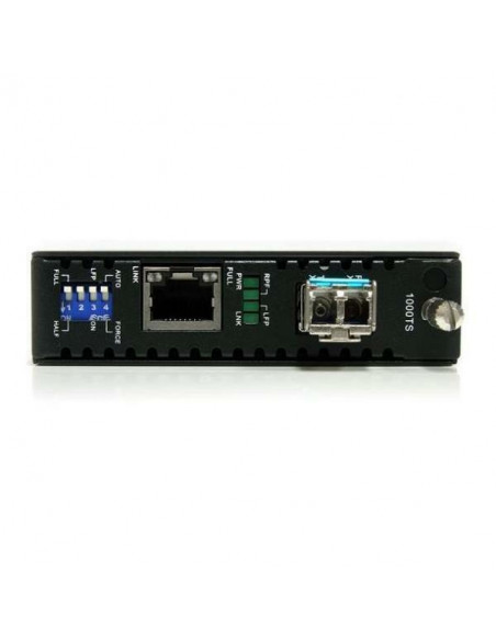 Com dimensões compactas (24 mm de altura, 155 mm de comprimento e 87 mm de profundidade), o conversor integra-se facilmente em qualquer espaço, sem comprometer o desempenho. A sua cor preta combina com a maioria dos equipamentos de rede, oferecendo uma estética profissional. O peso de 398 gramas garante a sua estabilidade, minimizando vibrações indesejadas.