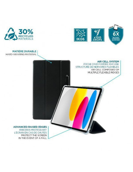 Capa Mobilis Edge Case, dedicada ao iPad de 10,9 polegadas (10ª geração). Construída em plástico resistente, na cor preta com detalhes transparentes. Peso leve e proteção eficaz.