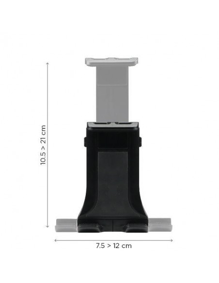 Fabricado em plástico resistente, na cor preta, o suporte é durável e fácil de limpar. Suas dimensões compactas ? 110 mm de altura, 142 mm de comprimento e 83 mm de profundidade, combinadas com um peso de 238 gramas ? permitem uma instalação fácil e discreta. A instalação é simples e intuitiva; o seu design permite um fácil acesso ao tablet, permitindo o uso de todas as funções sem comprometer a segurança.