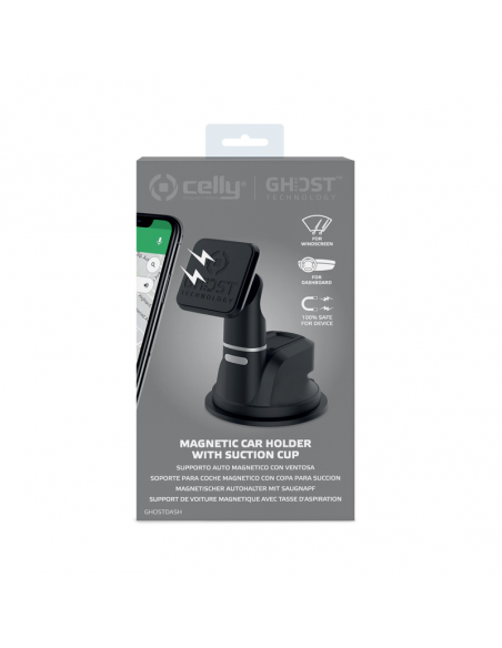 O suporte de carro Celly GHOSTDASH é uma solução prática para usar o seu smartphone no carro. Construído em plástico resistente, na cor preta, oferece suporte seguro e estável para o seu dispositivo. Dimensões aproximadas: 8cm x 5cm x 5cm