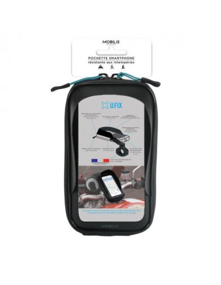 Capa universal Mobilis U.FIX para telemóveis, ideal para moto ou bicicleta. Fabricada em pele, na cor preta com detalhes em castanho. Oferece proteção e segurança para o seu telemóvel durante os seus percursos.