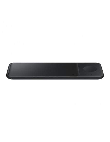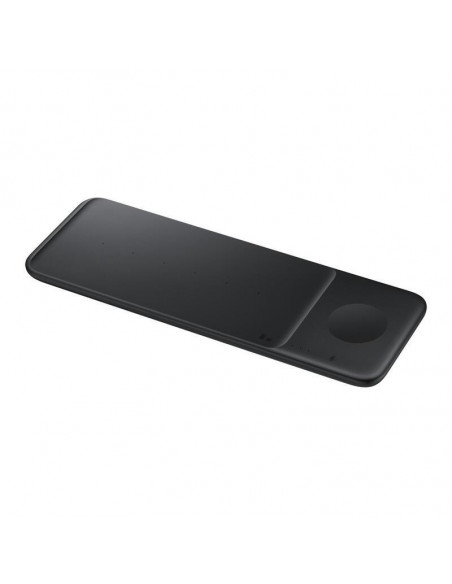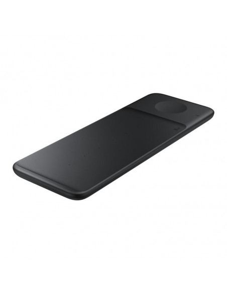 O Carregador Sem Fio Samsung Qi Wireless Trio Preto permite carregar simultaneamente até três dispositivos compatíveis com Qi.  Oferece carregamento rápido e um design elegante.