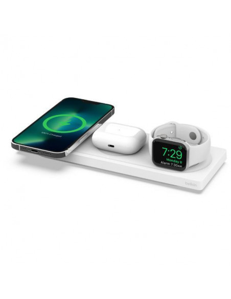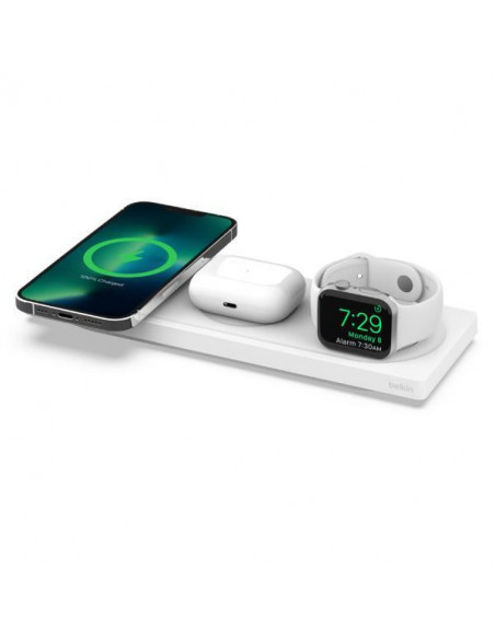 Carregador Sem Fios Belkin BoostCharge Pro 3 em 1 MagSafe, WIZ016VFWH, Branco, para iPhone, AirPods e Apple Watch